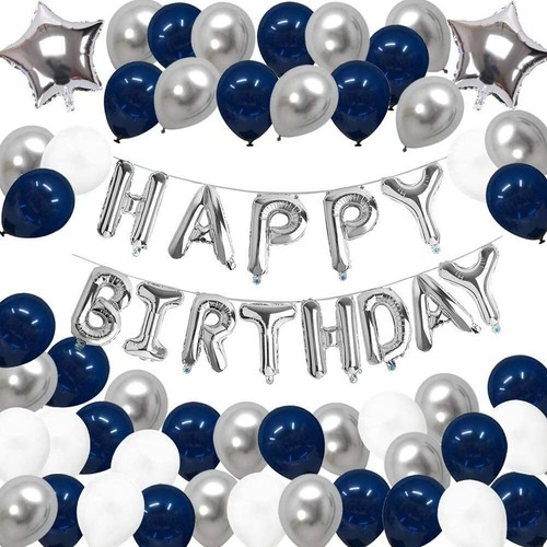 Happy Birthday Party Foil Balloons Banner Blue Silver Amp White Boys Girls Teens Ebay